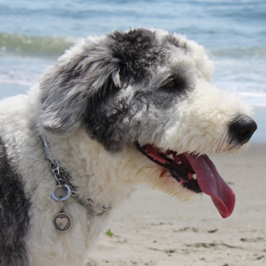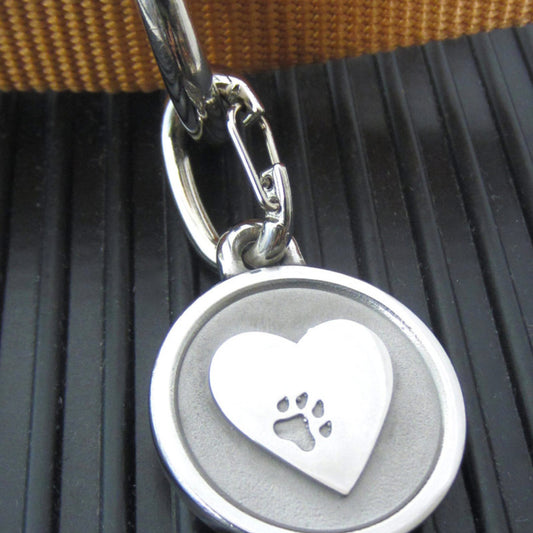 Pet tag silencers & tag clips are great id tag accessories! The EZ Change ID Clip is just the right size to hook directly through the bail (loop) of our Silver Paw pet tags. The loop itself is thick and plated with nickel just the same as the d-ring on your collar. The entire clip is 7/8″ long and 5/8″ wide. This size is perfect for people who don’t want their dog’s tag to hang down too low on their dog’s chest. Small dogs under 15 lbs can have a particular issue with larger clips.